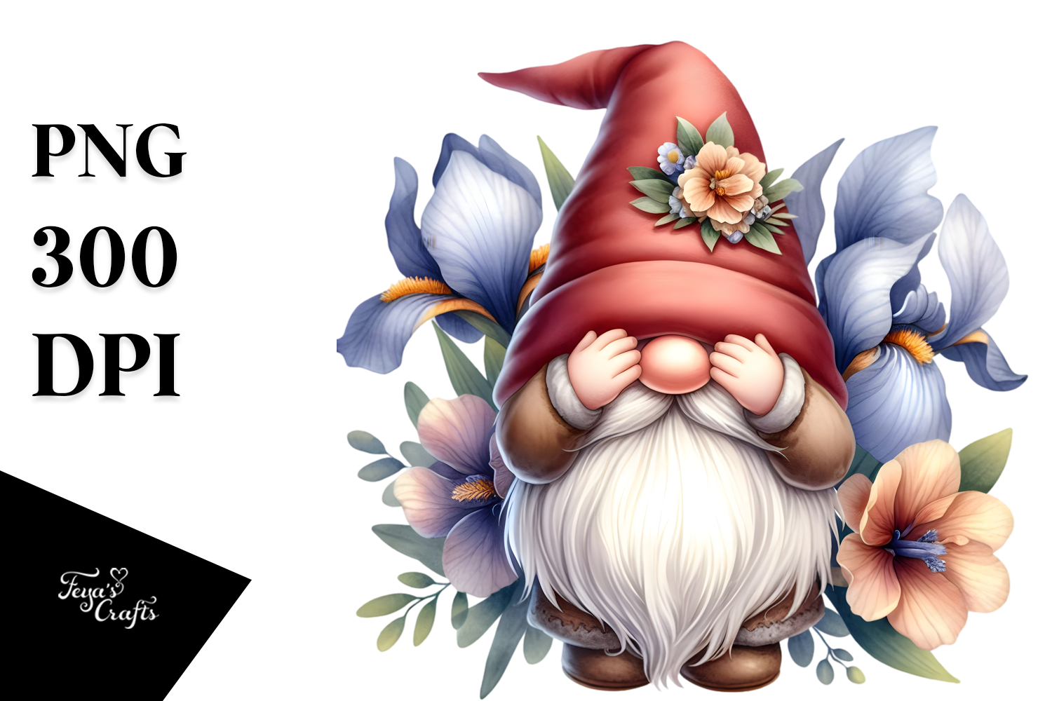 Cute GNOME with Big Hat and Freesia PNG example image 1
