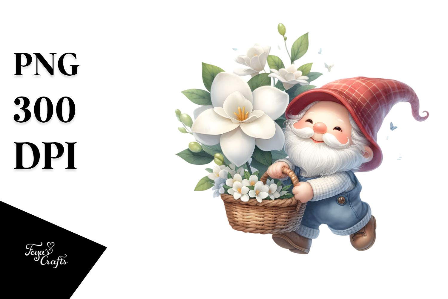 Floating Gnome with Gardenia, Lovely PNG example image 1