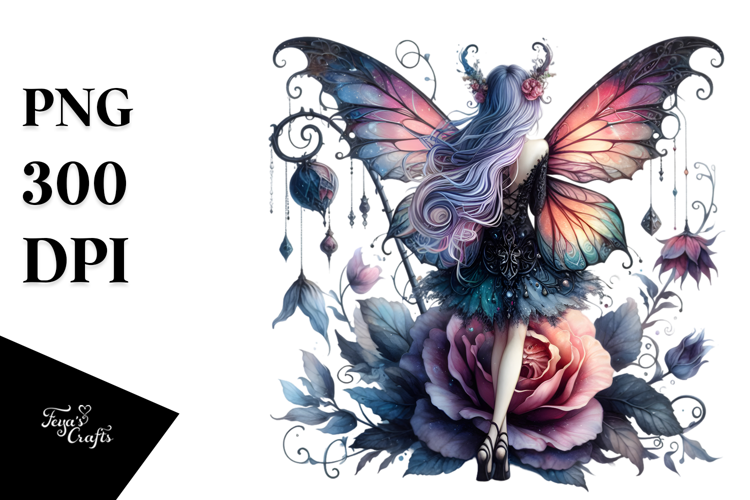 Gothic Fairy on Flower, Watercolor PNG example image 1