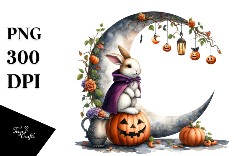 Watercolor Halloween Spooky Rabbit Jack-o-lanterns Halfmoon