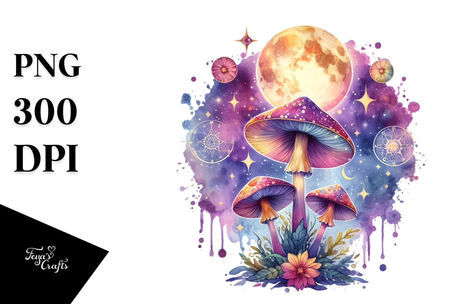 Celestial Mushroom Whitebackground Tarot Watercolorsplash