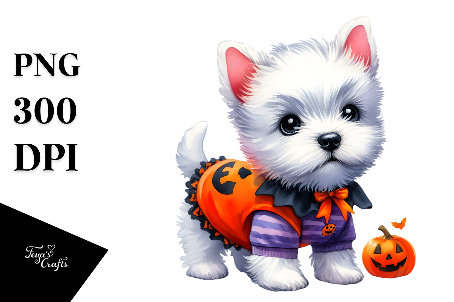 Watercolor Halloween Whitebackground Vibrantcolors Coolhaircut Babywesthighlandwhiteterrier