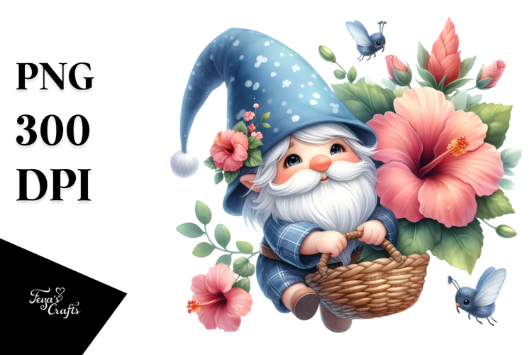 Watercolor Hibiscus Floating Gnome Whitebackground