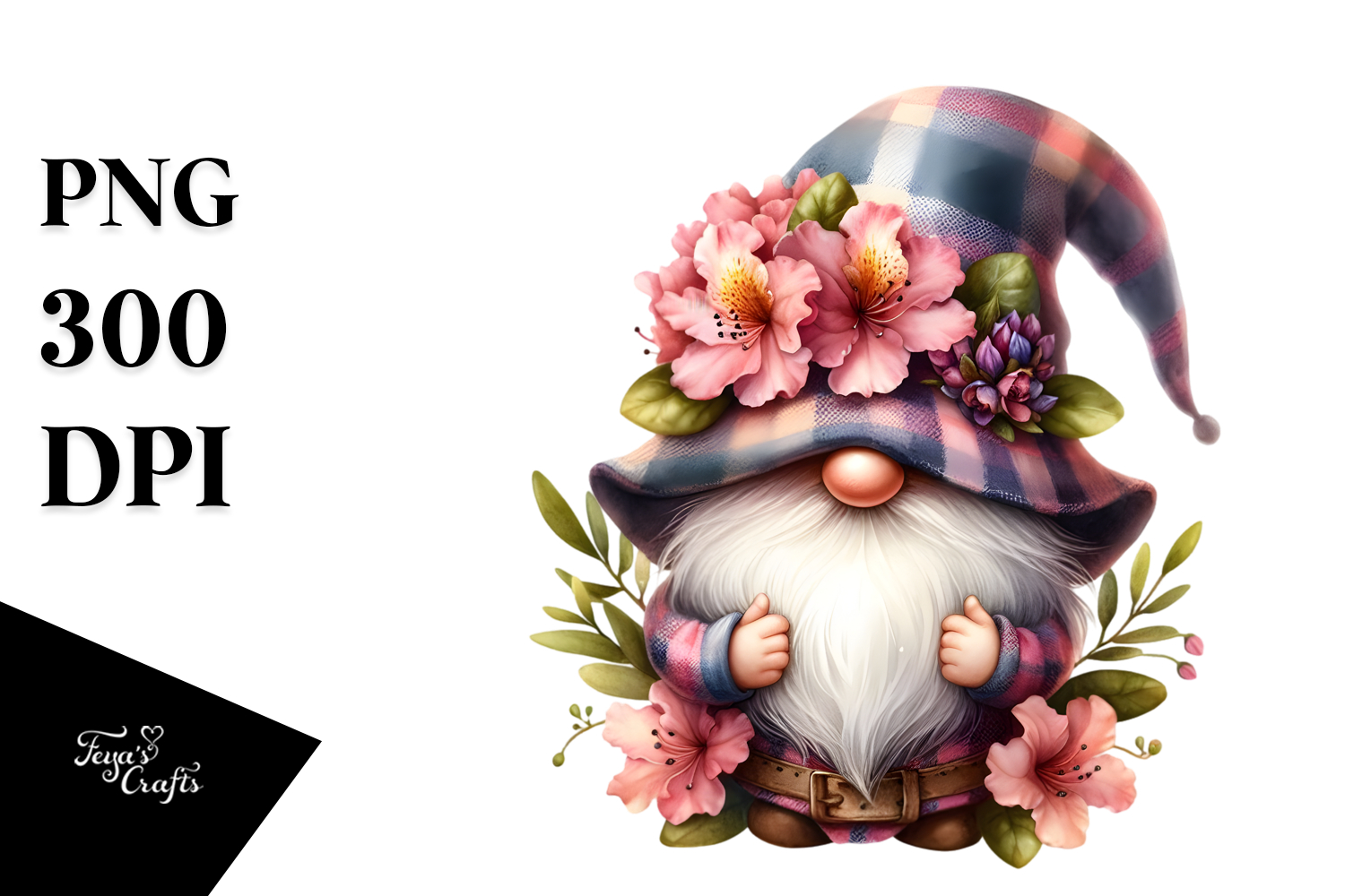 Watercolor Floating Rhododendron Gnome Whitebackground