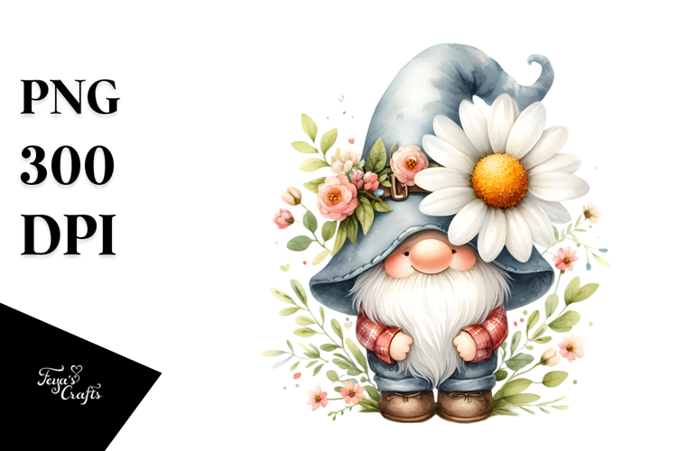 Watercolor Large Cute Daisy Gnome Covering Impatiens Bighat