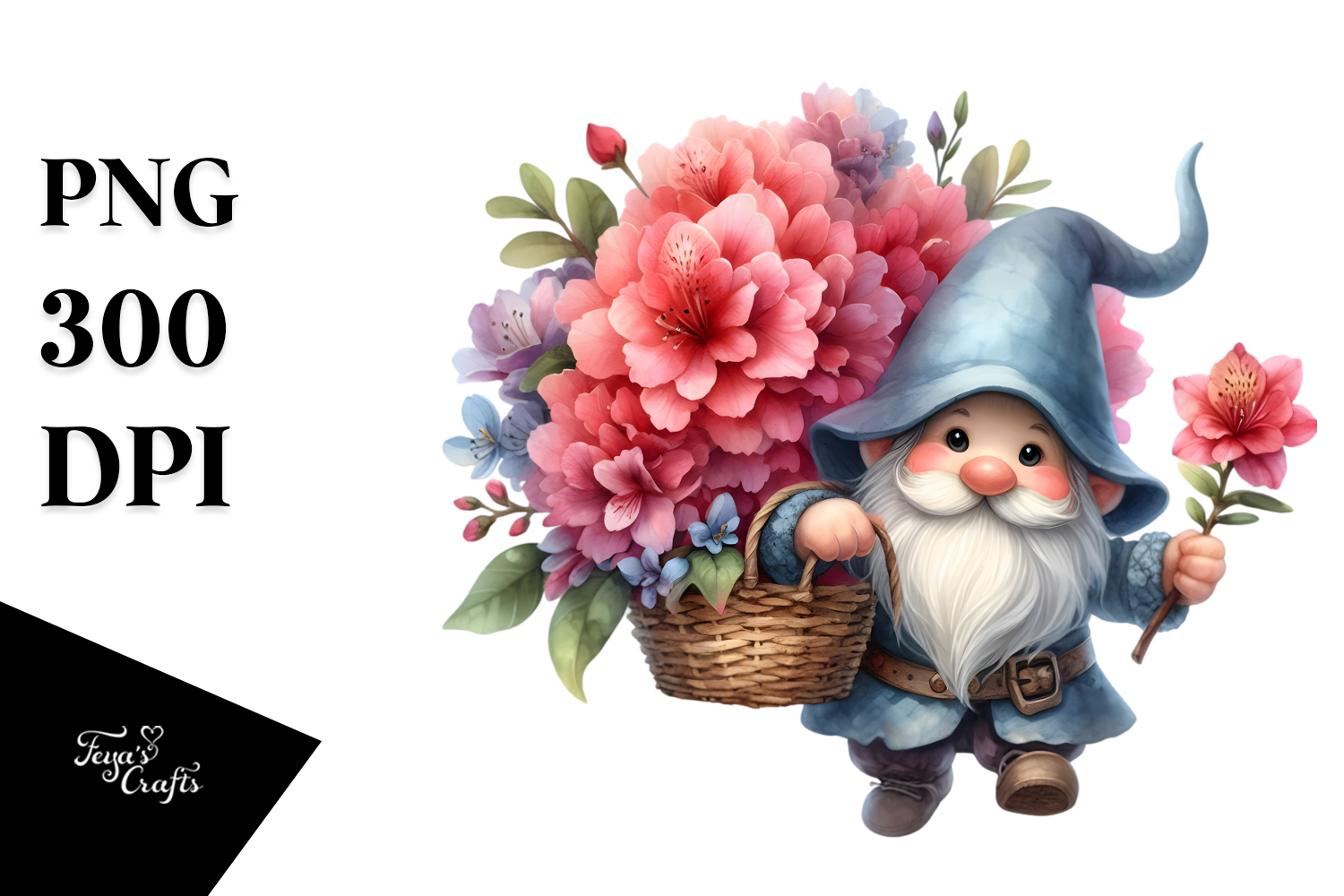 Similar Design Products to Watercolor Gnome with Large Rhododendron, PNG