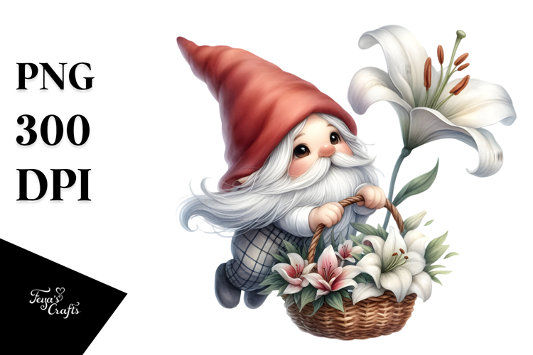 Cute Gnome Holding Lily, Transparent PNG example image 1
