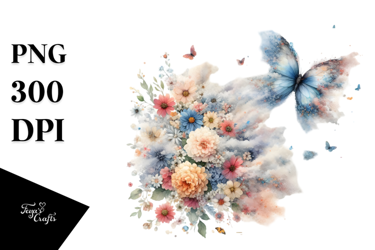 Sticker Summer Flower Butterfly Png Sublimation Whitebackground Halfofflowers Cloudofdust