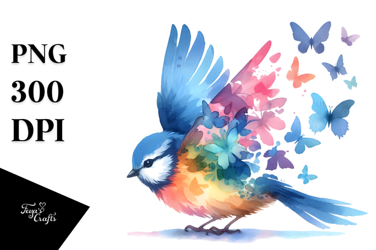 Sticker Summer Colorful Flower Bird Png Sublimation Whitebackground Halfofbutterflysilhouettes