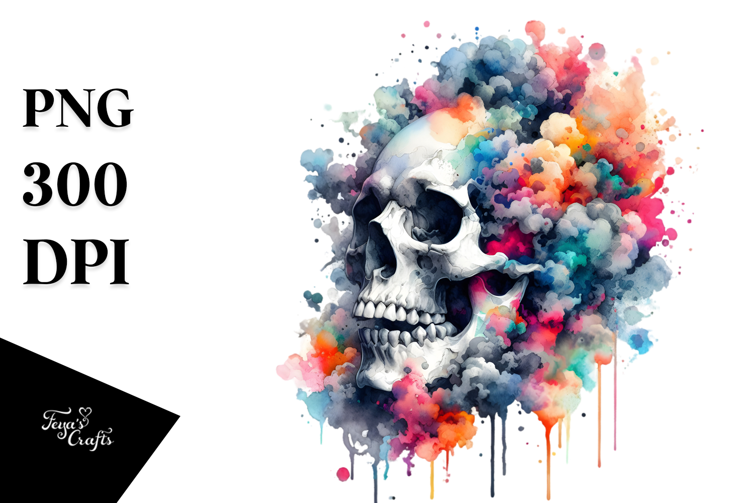 Watercolor Elements Art Skull Colorful Splashes Dust Cloud Whitebackground