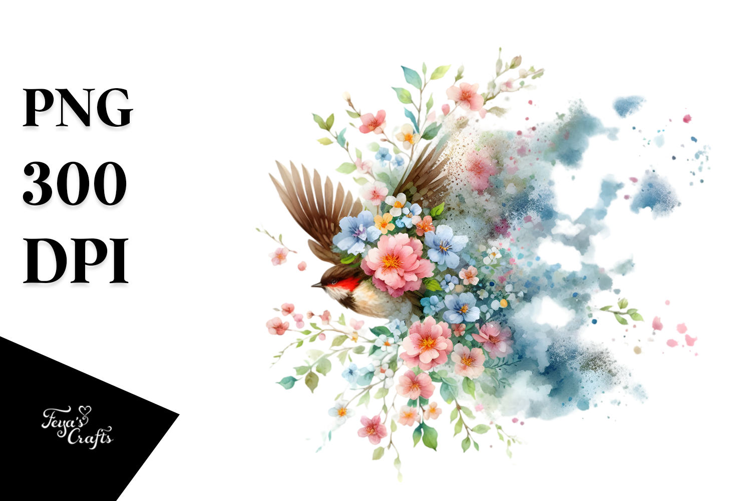 Watercolor Spring Elements Art Flowers Dust Bird Cloud Whitebackground