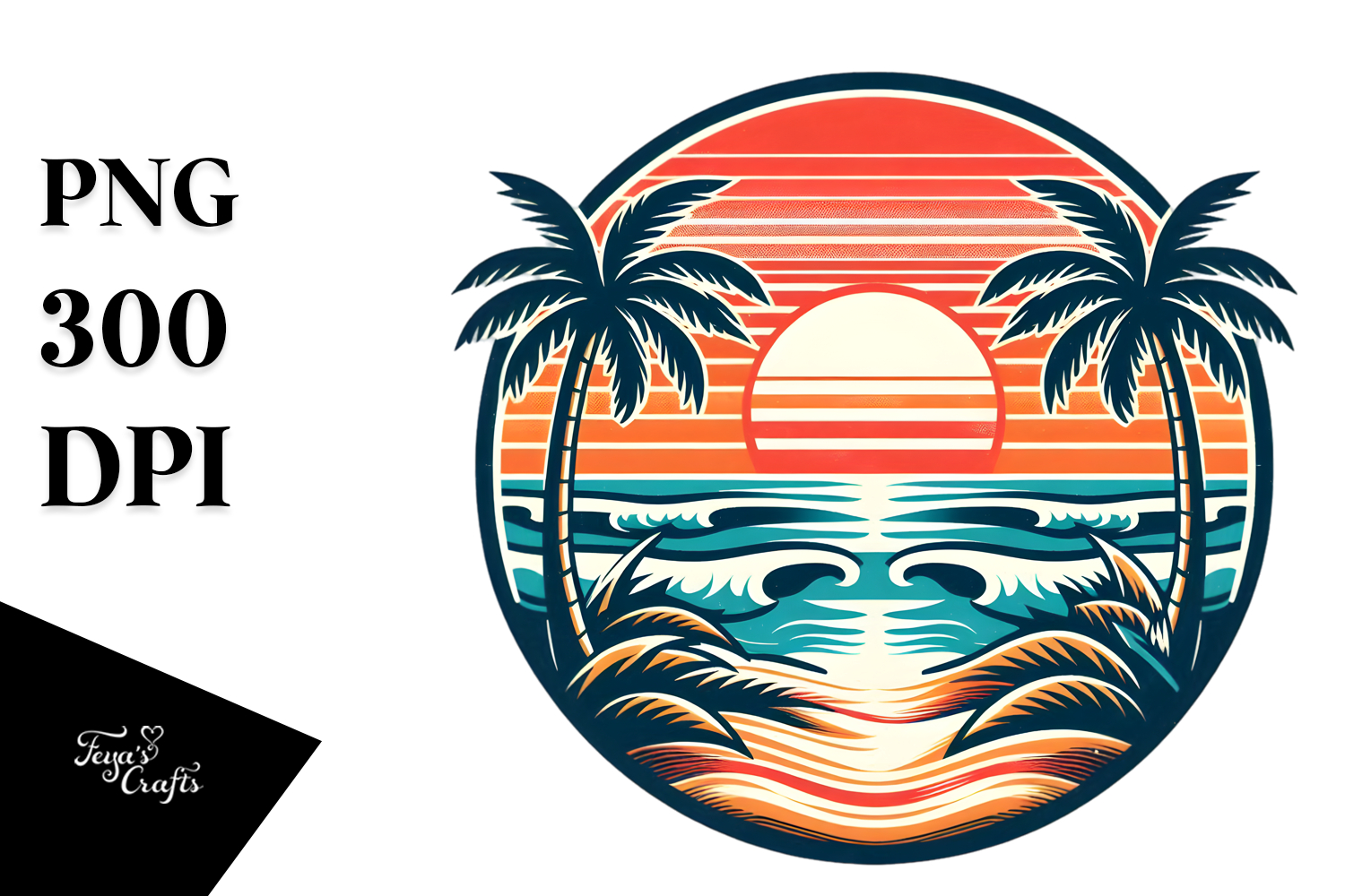 Retro Tshirt Style Beach Clipart Sunset Tropical Whitebackground Centered