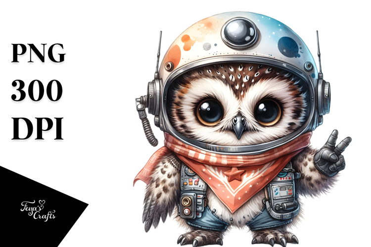 Watercolor Cute Baby Energic Owl Whitebackground Astronauthelmet Punklook