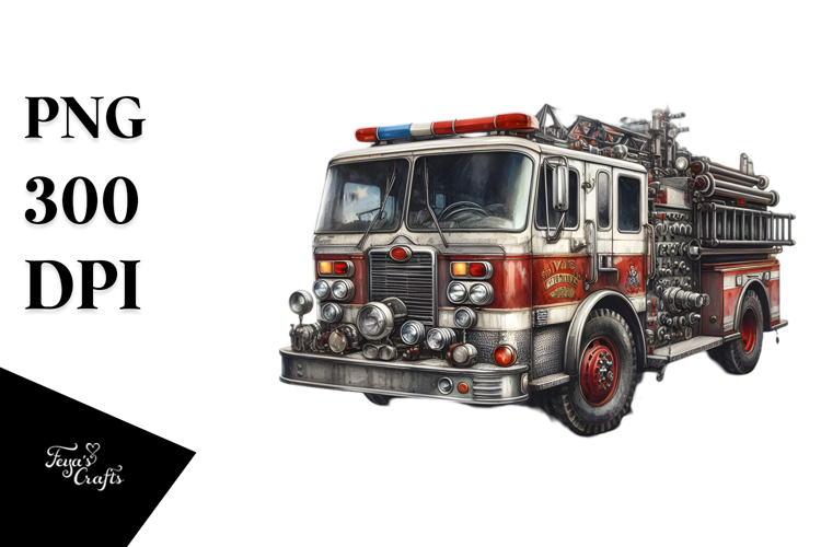 Vintage Fire Engine Watercolor example image 1