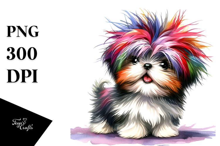 Watercolor Cute Big Baby Head Body Expressive Small Shihtzu