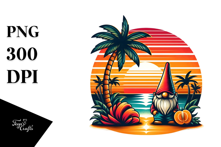 Retro Tshirt Style Clipart Sunset Tropical Gnome Whitebackground Centered