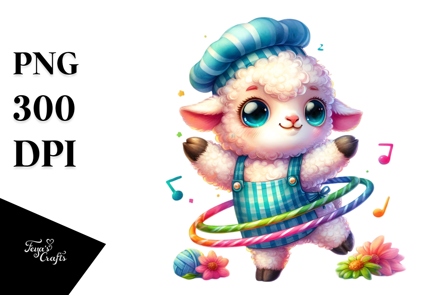 Vibrant Crazy Cute Baby Lamb PNG example image 1