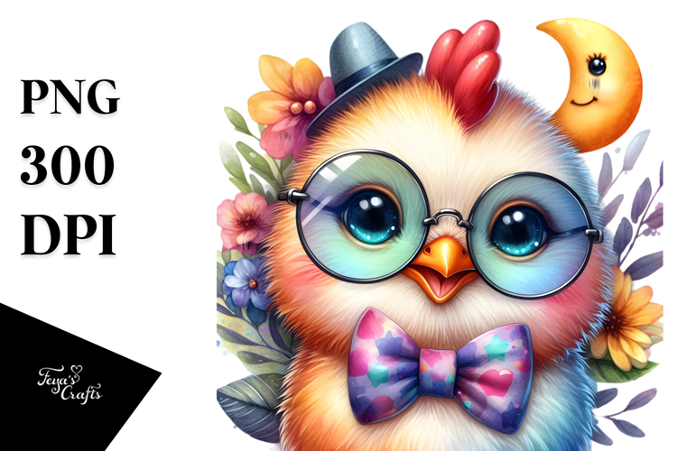 Watercolor Cute Colorful Sunglasses Rooster Bowtie Whitebackground Halfmoon Bigeyes