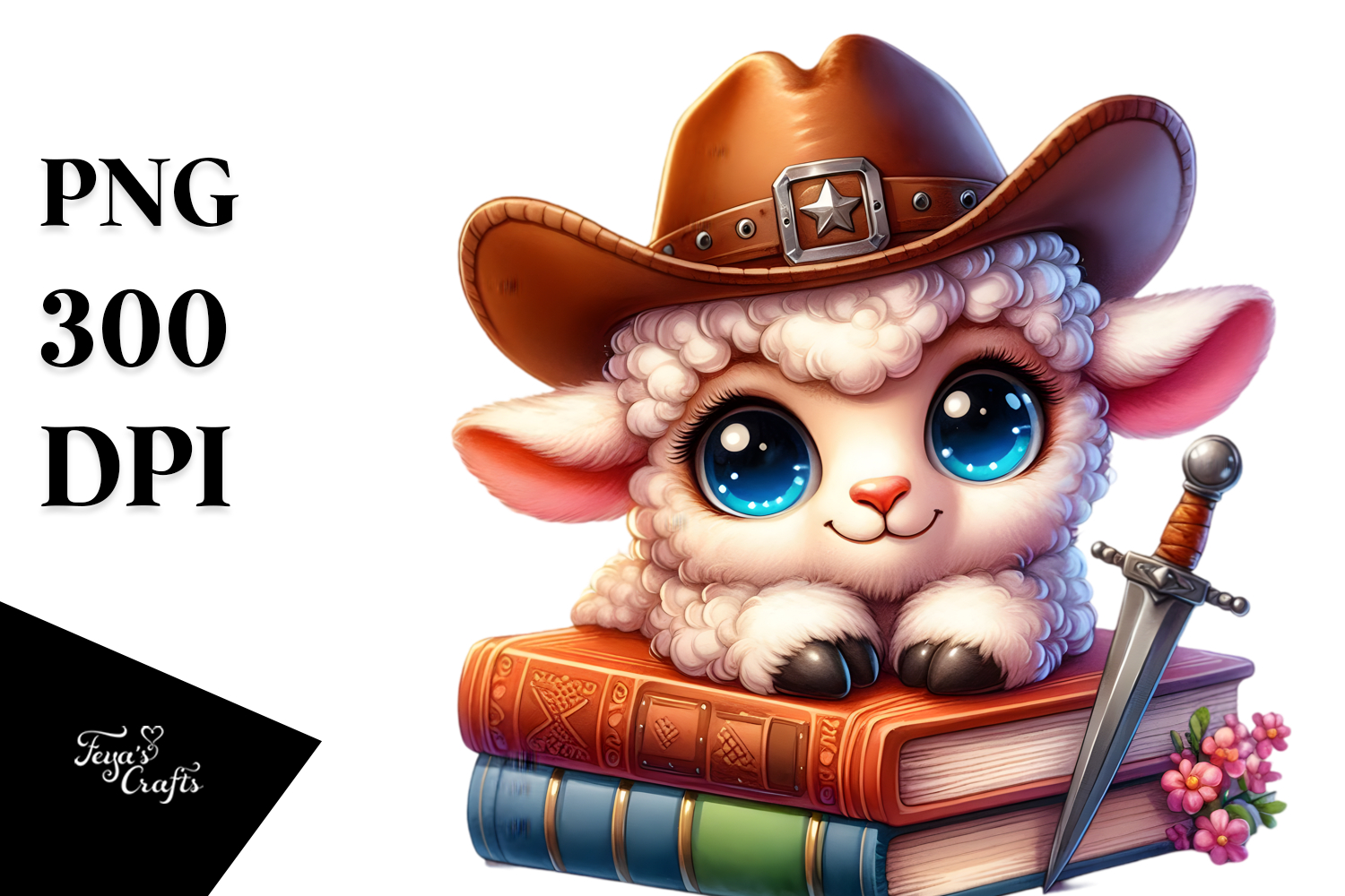 Book Cute Smiling Vibrantwatercolor Cowboyhat Bigeyes Babylamb Tinysword