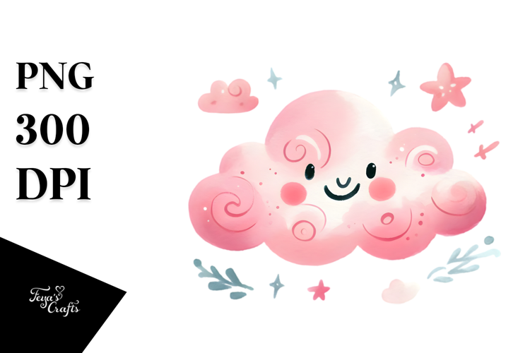 Watercolor Simple Whimsical Cloud Smiling Pinkish