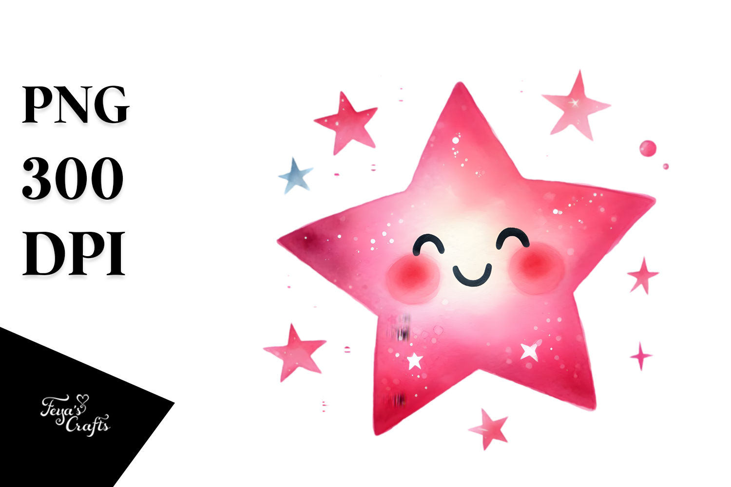 Watercolor Simple Whimsical Star Smiling Pinkish