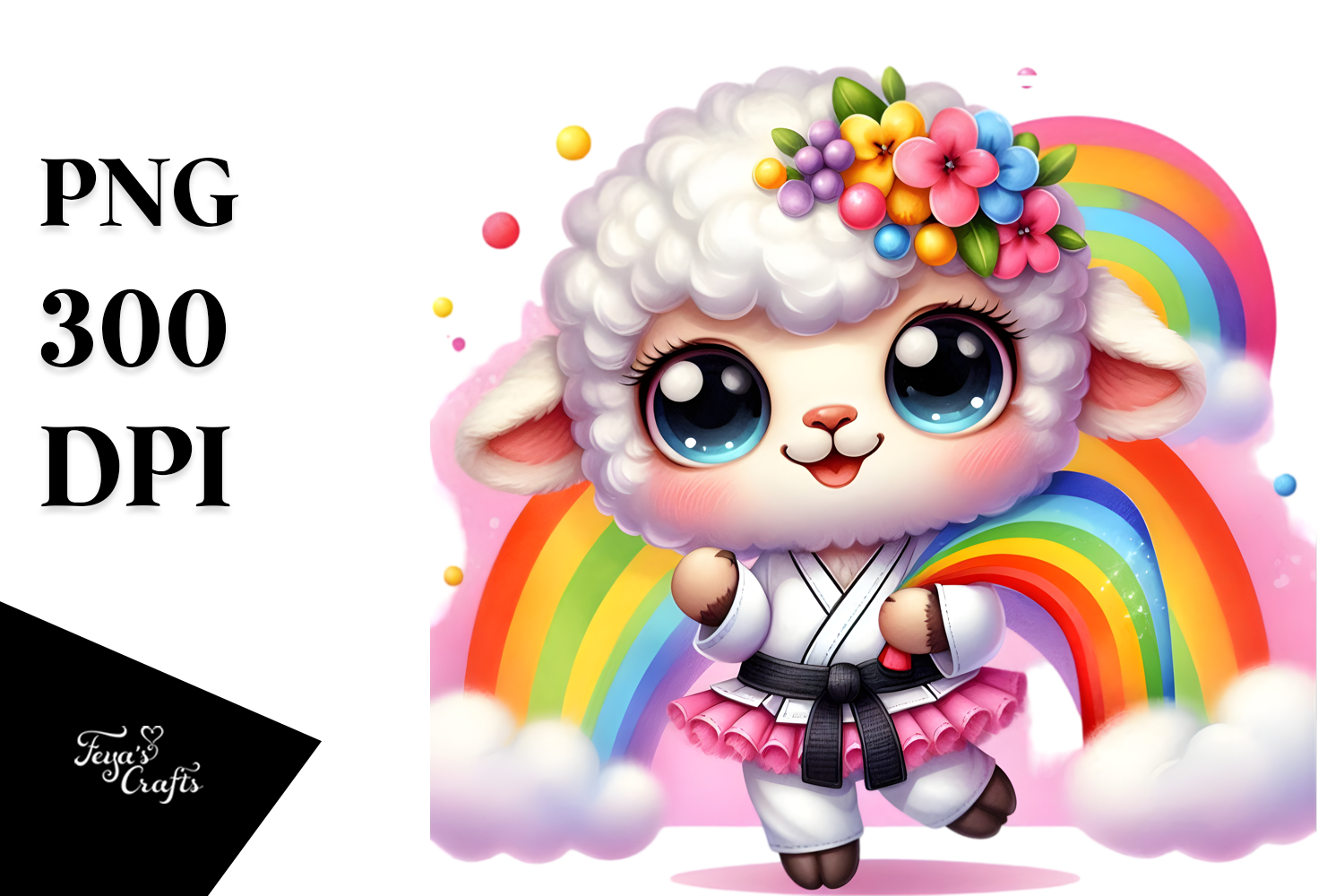 Watercolor Cute Vibrant Rainbow Smiling Tutu Lamb Bigeyes Karateoutfit