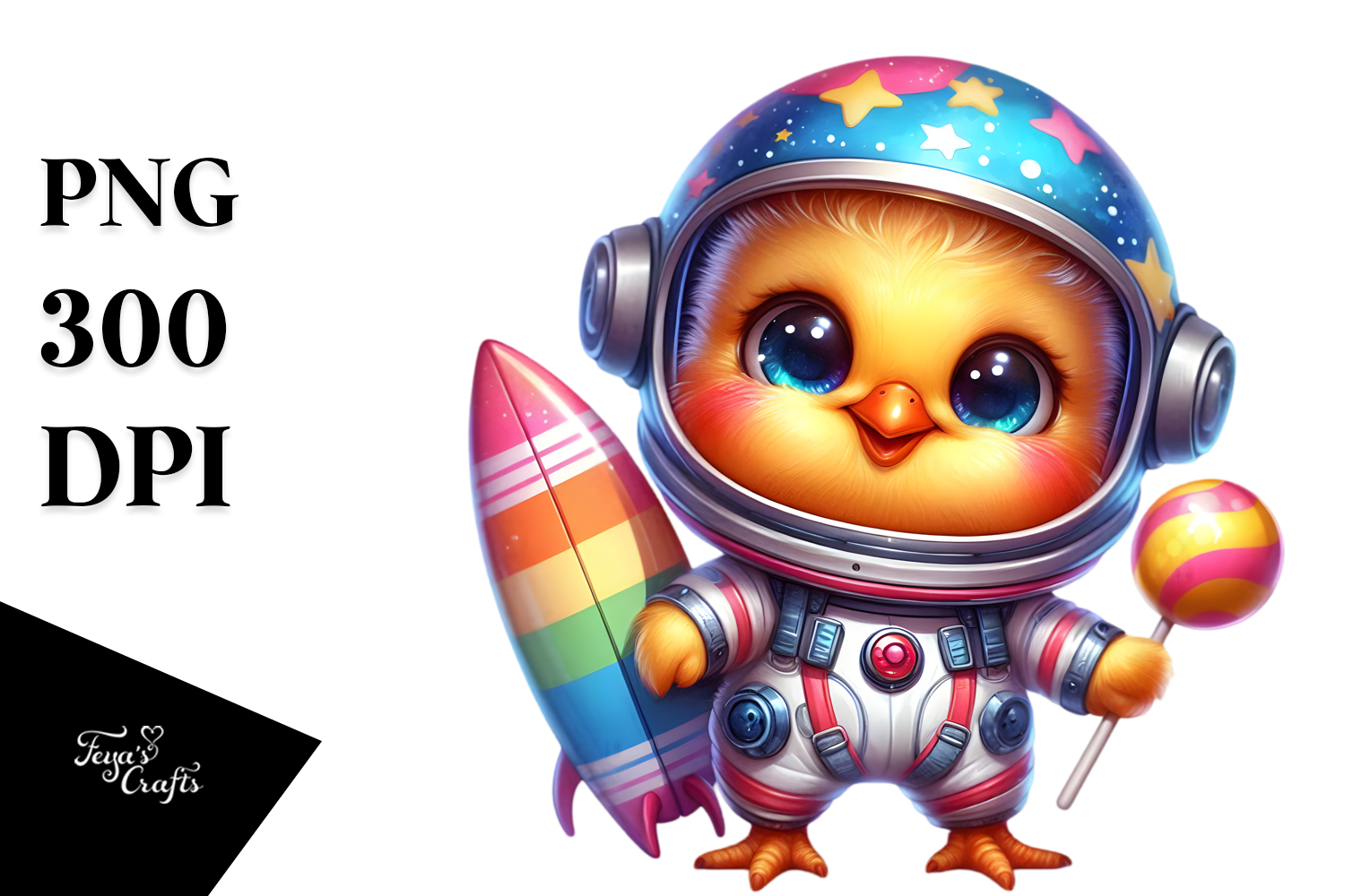 Similar Design Products to Watercolor Baby Chicken with Astronaut Suit PNG