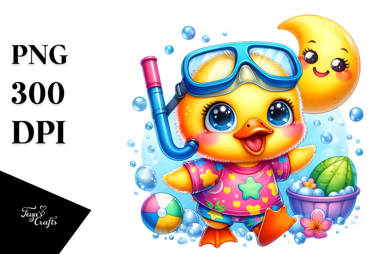 Cute Crazy Snorkel Colorfulwatercolor Bigeyes Smilingmoon Babyduck Summerclothes