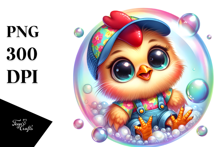 Similar Design Products to Colorful Baby Rooster Cuddling in Soap Bubble PNG