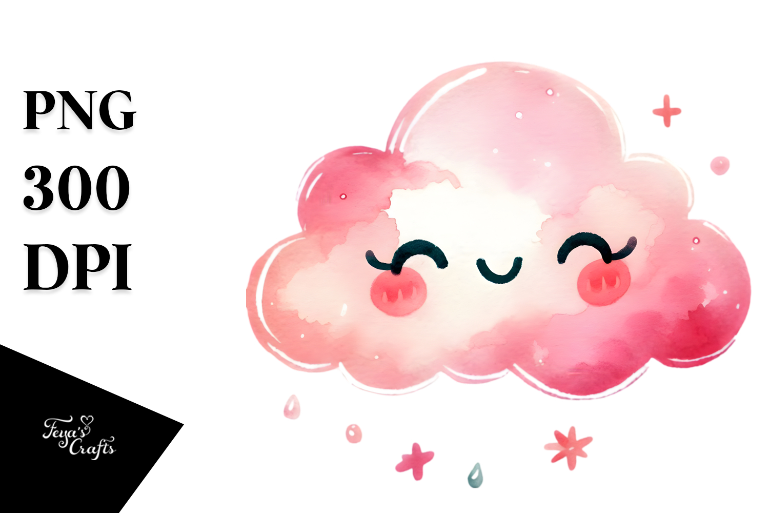 Watercolor Simple Whimsical Cloud Smiling Pinkish Whitebackground