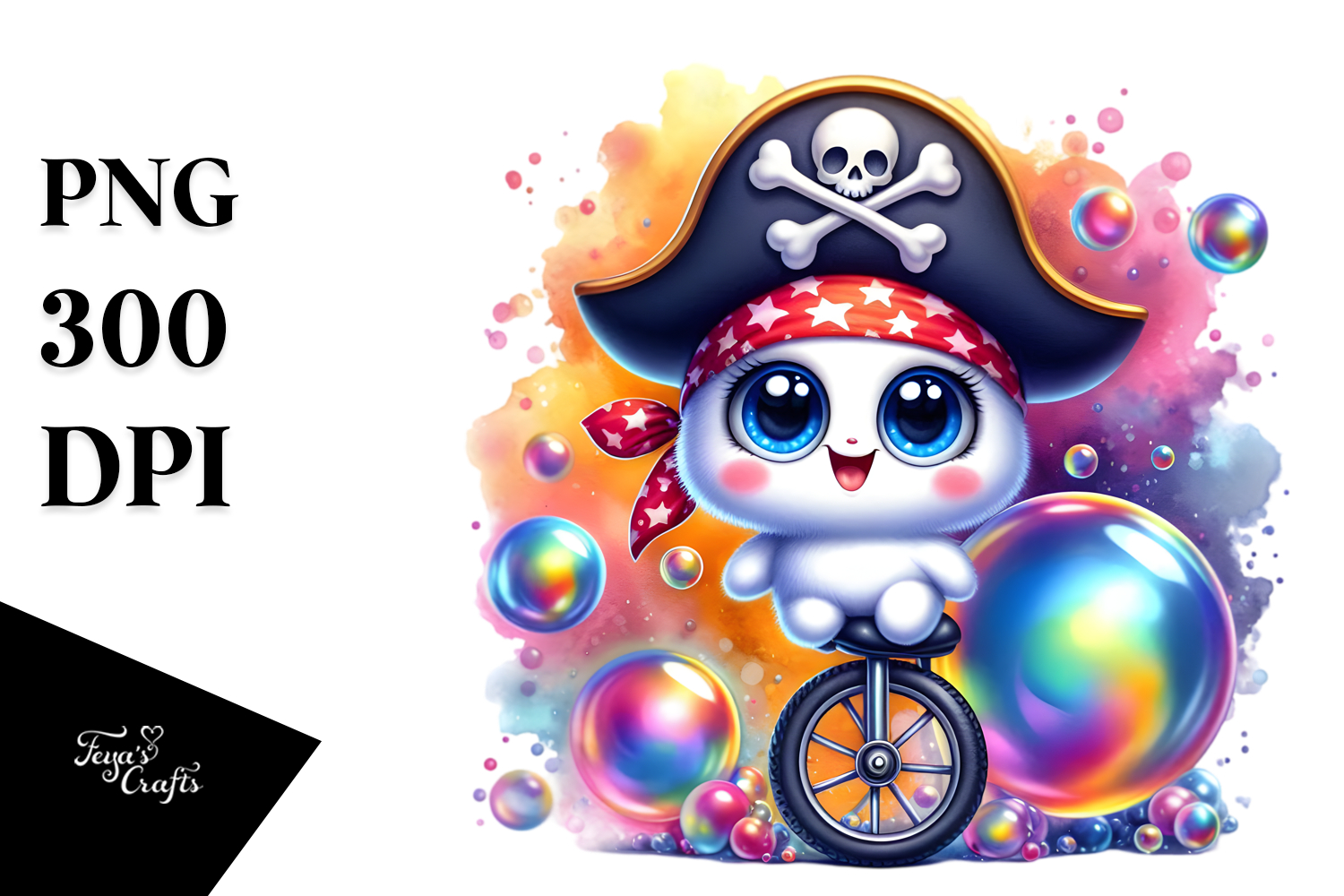 Watercolor Cute Vibrant Smiling Unicycle Soapbubble Bigeyes Piratehat Babyfary