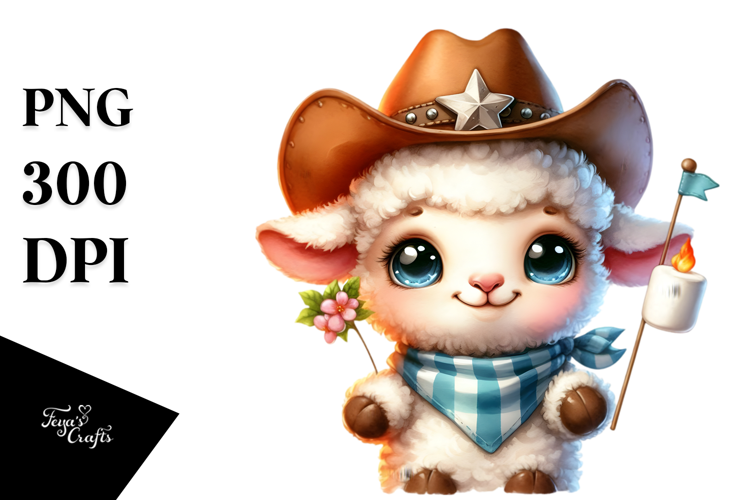 Baby Lamb with Cowboy Hat and Marshmallow on a Stick PNG example image 1
