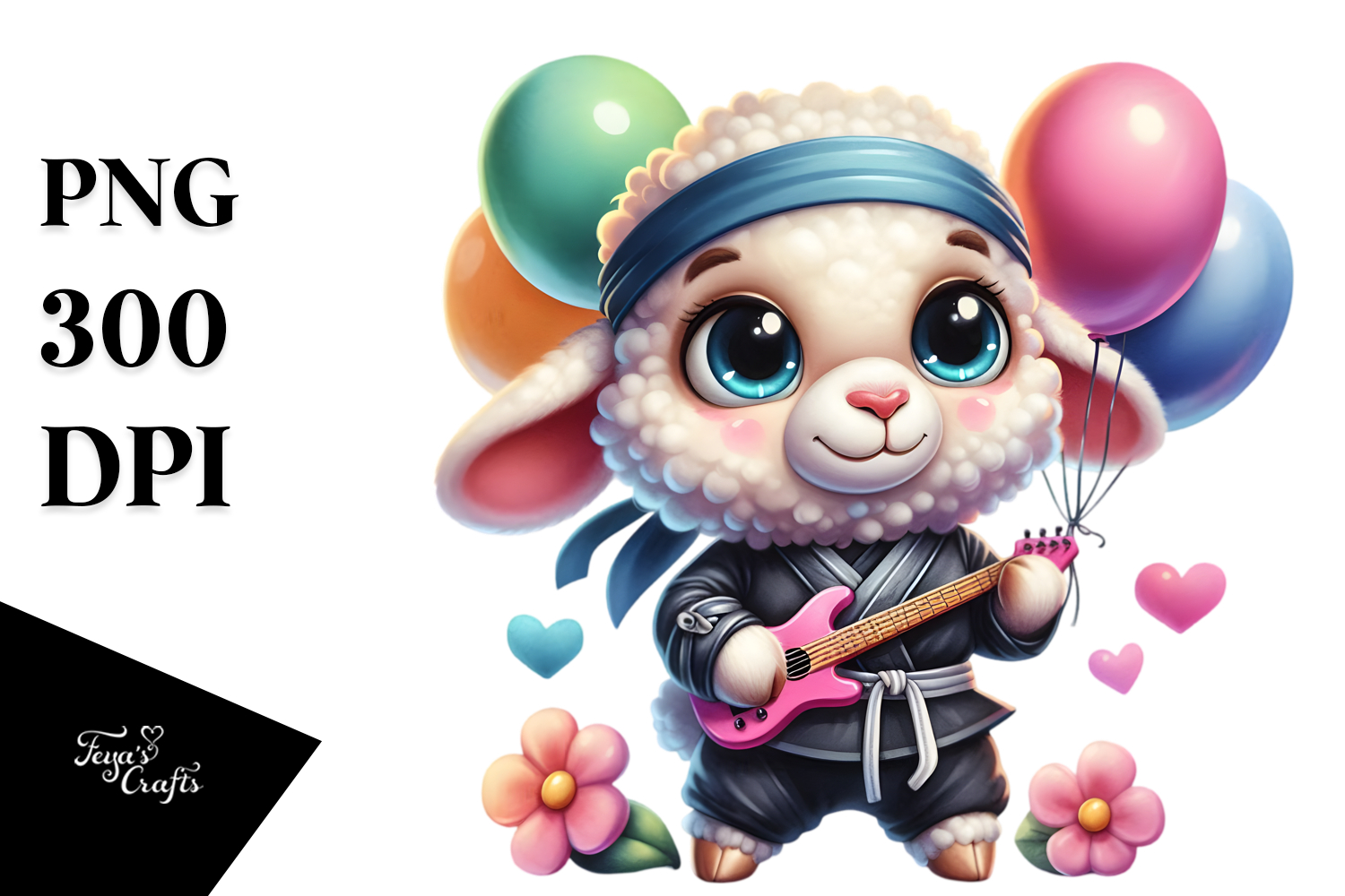 Watercolor Cute Guitar Vibrant Balloons Goofy Bigeyes Babylamb Ninjaoutfit