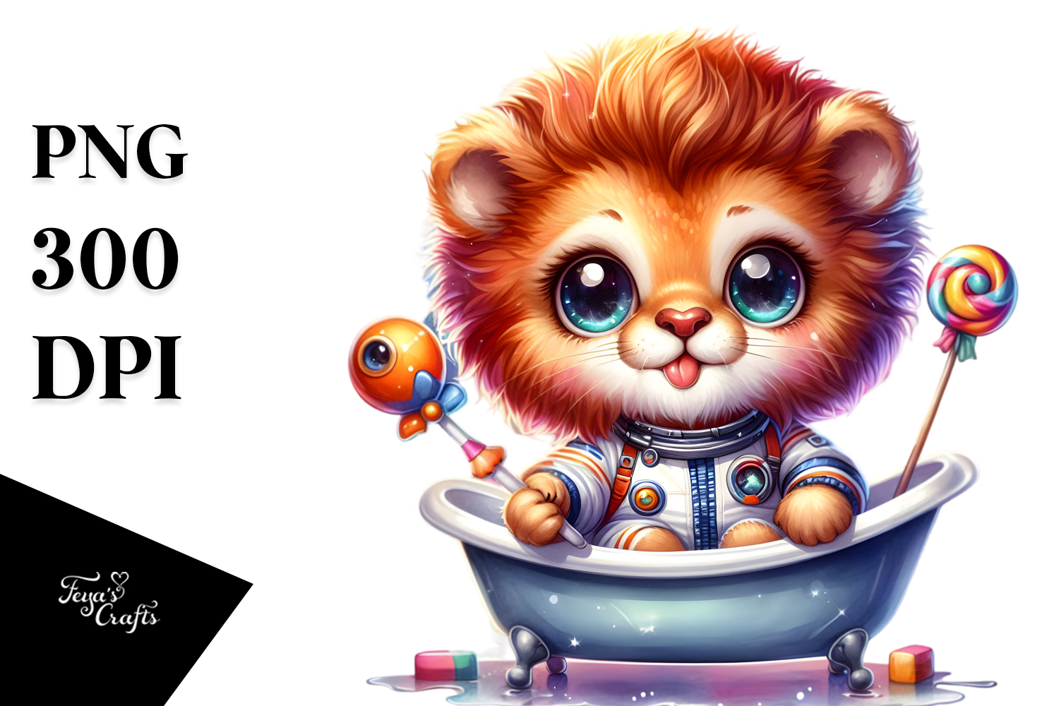 Watercolor Cute Crazy Vibrant Lollipop Bathtub Babylion Bigeyes Astronautsuit