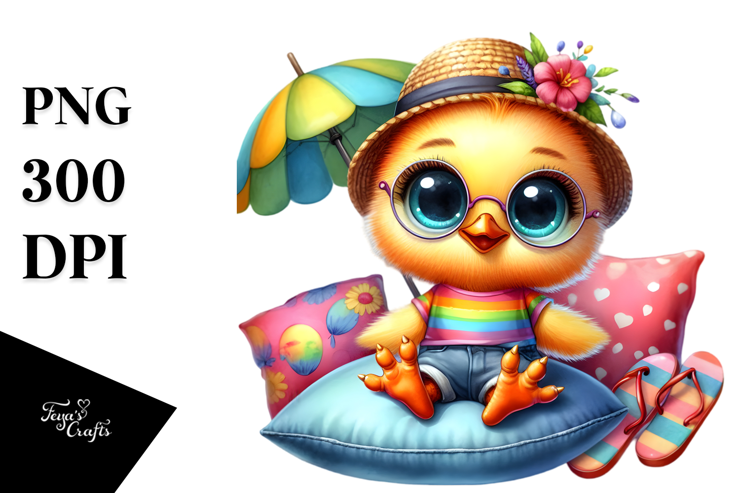 Watercolor Vibrant Whitebackground Babychicken Bigeyes Summerclothes Springclothes Goofycute Sittingonapillow