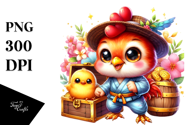 Watercolor Cute Crazy Vibrant Bigeyes Babyrooster Treasurechest Springclothes Karateoutfit