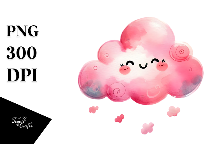 Watercolor Simple Whimsical Cloud Smiling Pinkish Whitebackground