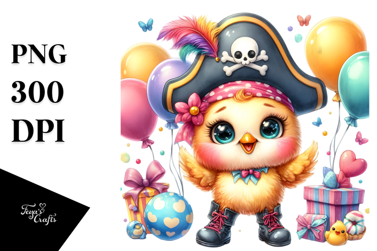 Watercolor Cute Colorful Smiling Balloons Babychicken Bigeyes Oversizedboots Piratehat