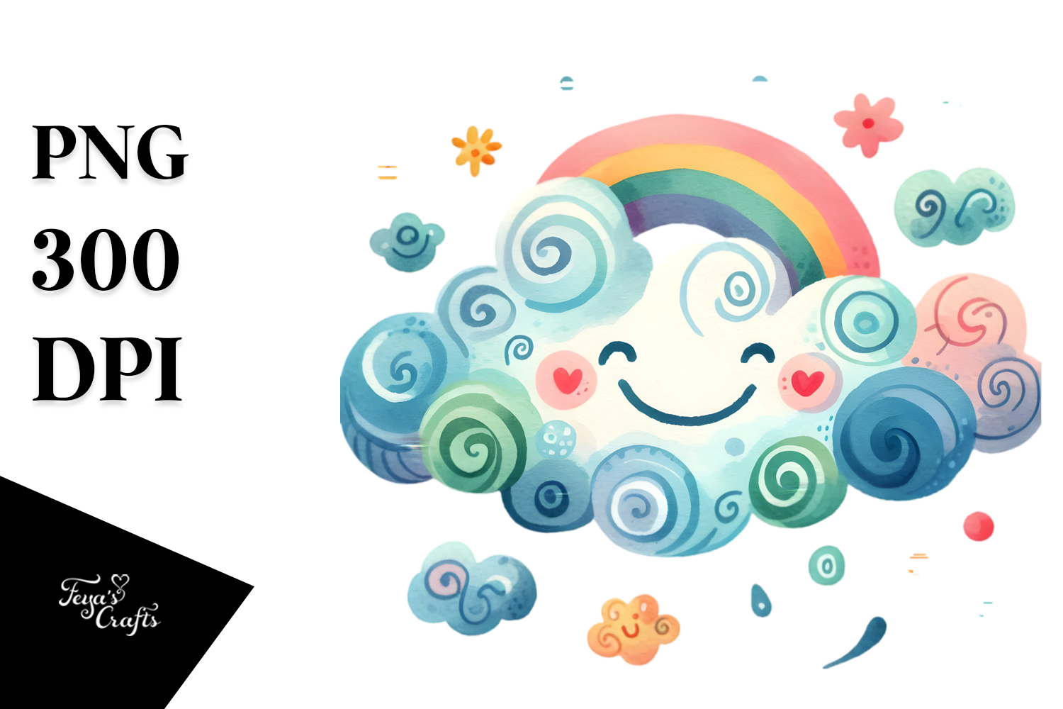 Watercolor Whimsical Cloud Colorfull Smiling Whitebackground Verysimple