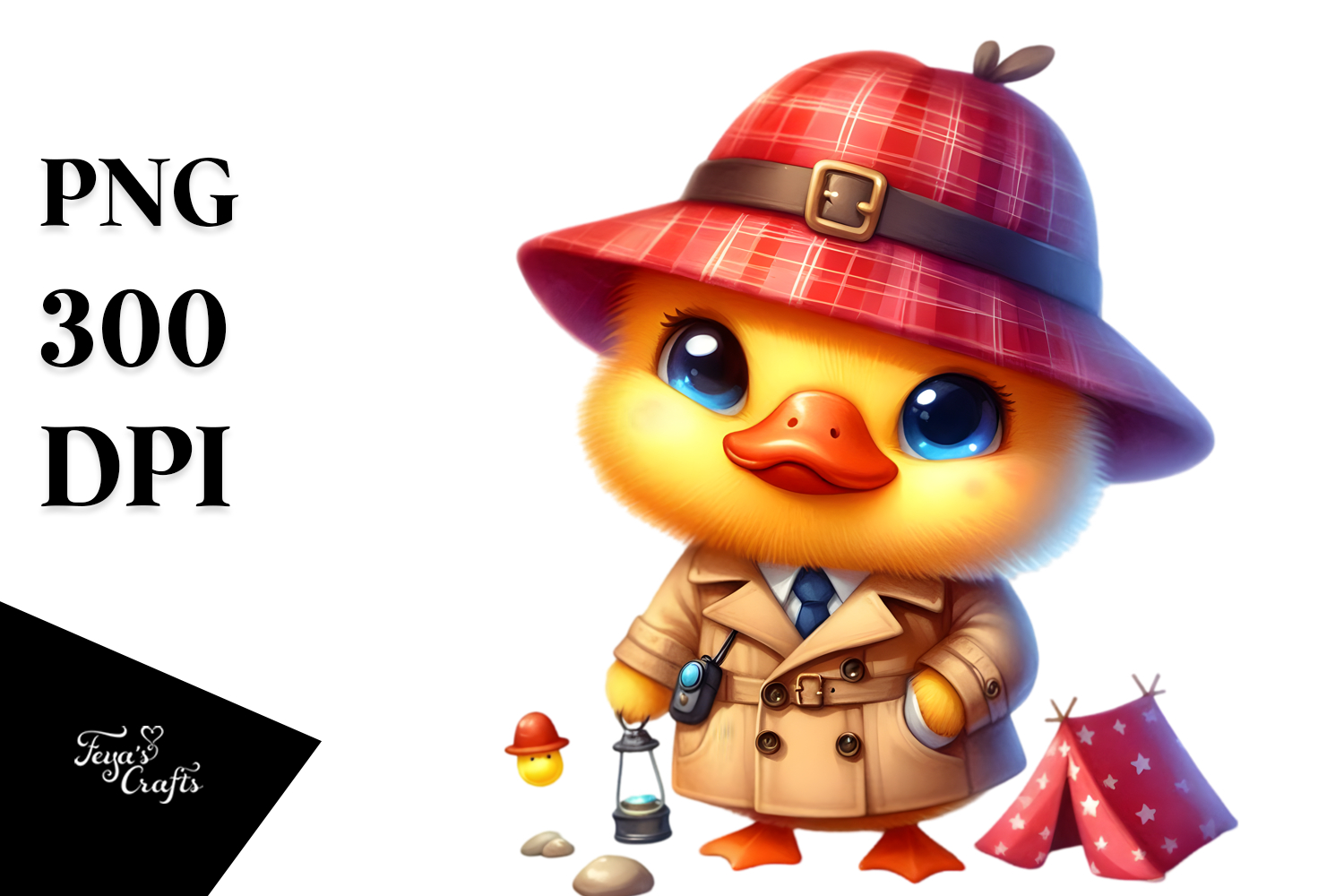 Watercolor Cute Crazy Vibrant Bigeyes Babyduck Tinytent Detectivetrenchcoat Snoringloudly