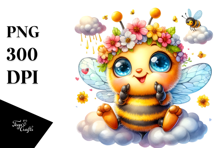 Watercolor Vibrant Whitebackground Babybee Bigeyes Springclothes Crazycute Cuddlingsmilingcloud