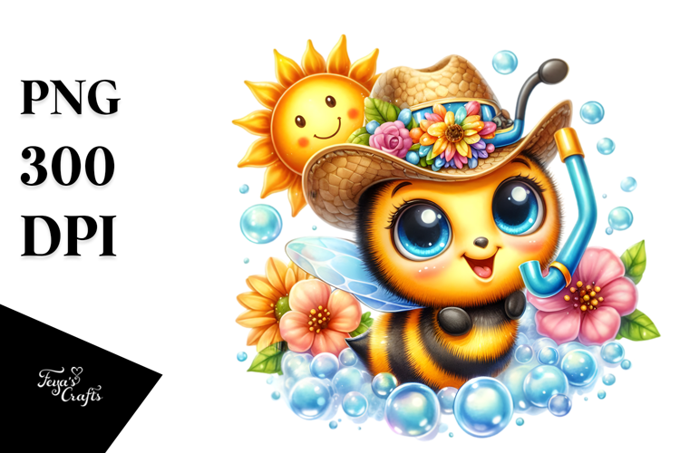 Watercolor Vibrant Whitebackground Cowboyhat Babybee Bigeyes Smilingsun Smilingcute Snorkelbubblebath
