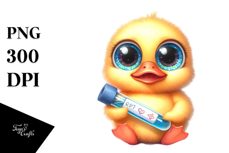 Watercolor Cute Vibrant Holding Whitebackground Testtube Bigeyes Babyduck Crazyeyes