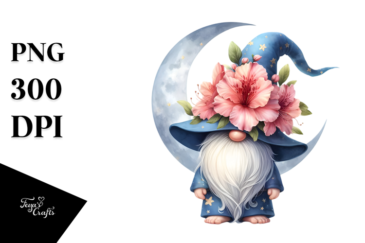 Cute GNOME with Big HAT and Azalea PNG example image 1