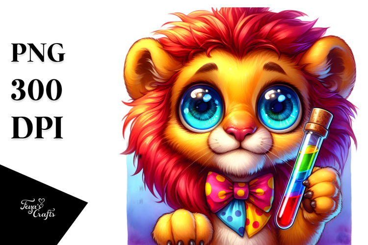 Watercolor Cute Baby Crazy Vibrant Lion Whitebackground Testtube Bigeyes