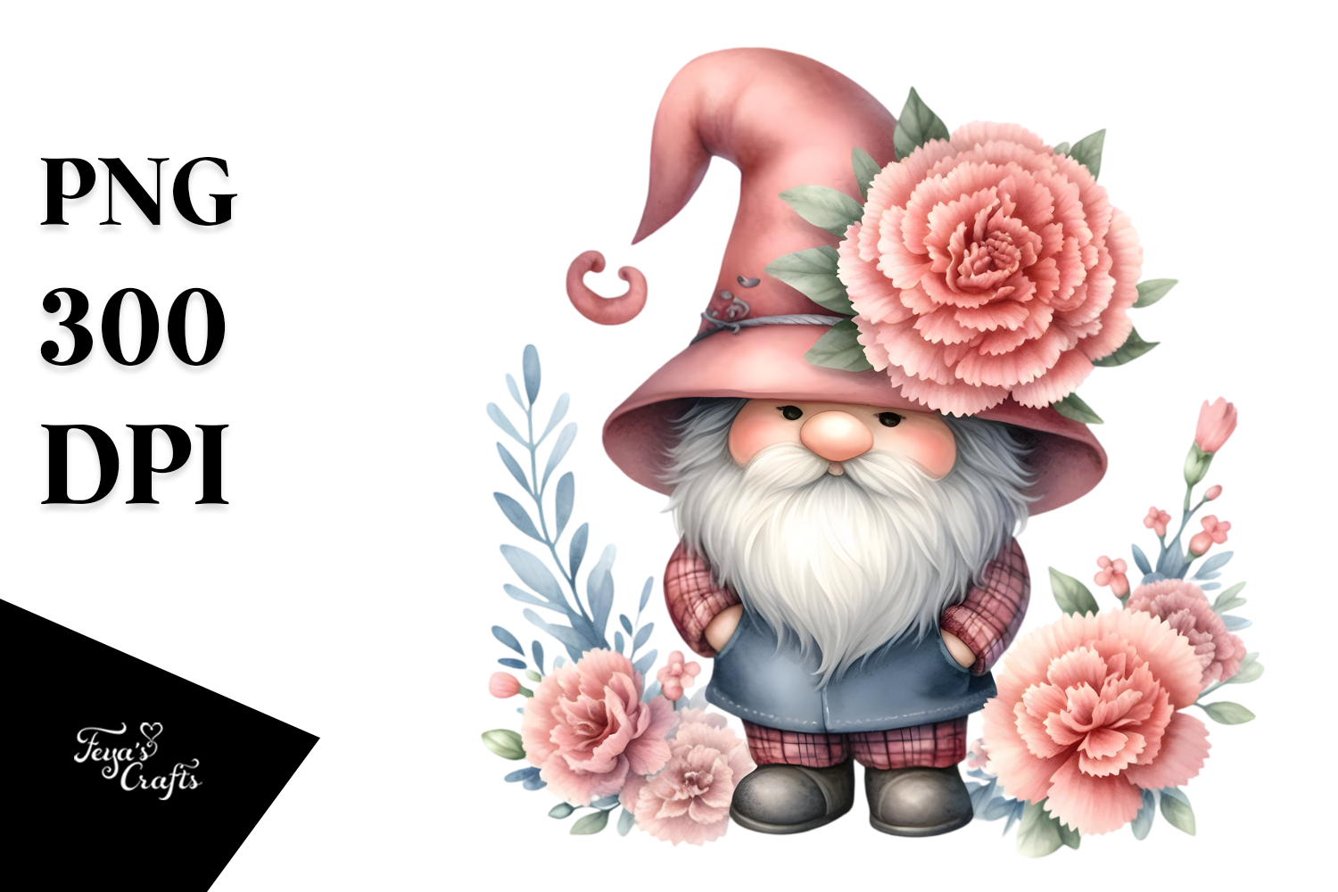 Cute Gnome with Big Hat, PNG example image 1