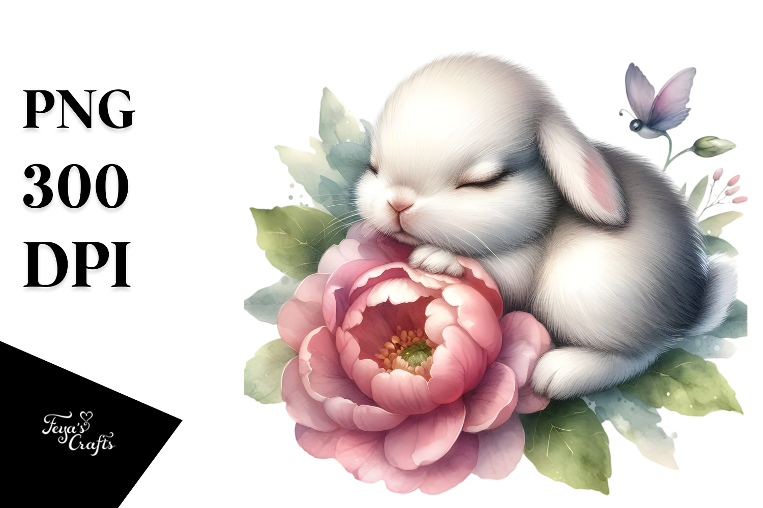 Similar Design Products to Sleeping Baby Bunny on Flower, PNG