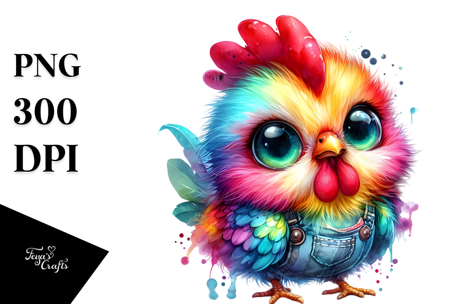 Watercolor Cute Baby Crazy Vibrant Rooster Whitebackground Bigeyes Dramatically
