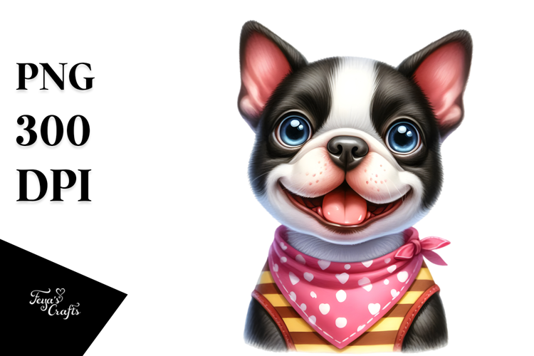 Watercolor Cute Baby Boston Terrier PNG example image 1