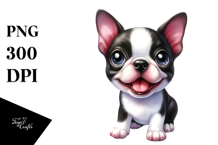 Watercolor Baby Boston Terrier with Big Eyes PNG example image 1